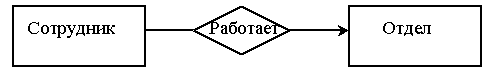 Присутствие в задании мощности связи значения «0» объявляет связь как неполную (необязательную). Например, связь РАБОТАЕТ между сущностями ОТДЕЛ и СОТРУДНИК на рис. 5.5 должна читаться следующим образом: «Каждый сотрудник обязательно работает только в одном отделе; в отделе работает произвольное число сотрудников или не работает ни одного».