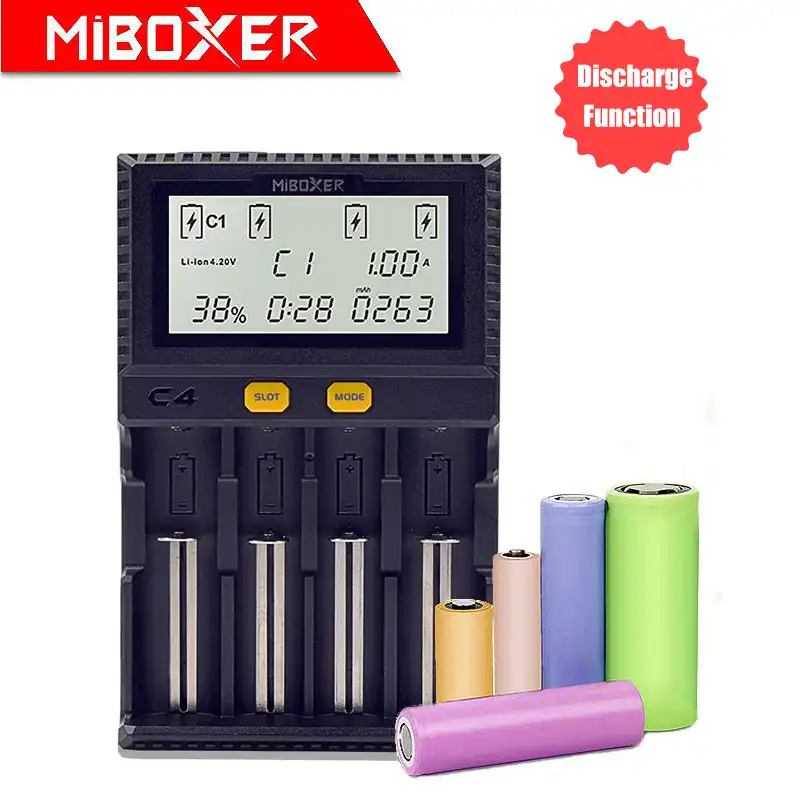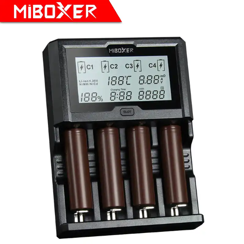 Для получения более полной информации о стоимости и сроках доставки Оригинал Miboxer C4 VC4 lcd Смарт зарядное устройство для литий ионных/IMR/INR/ICR/LiFePO4 18650 14500 нажмите "Подробнее".